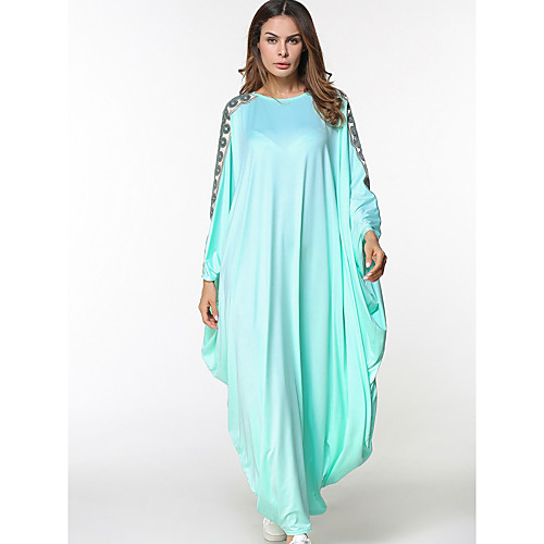 Жен. На выход Уличный стиль Летучая мышь Кафтан Платье - Этно, С принтом Макси До колена / Крупногабаритные