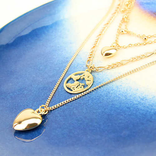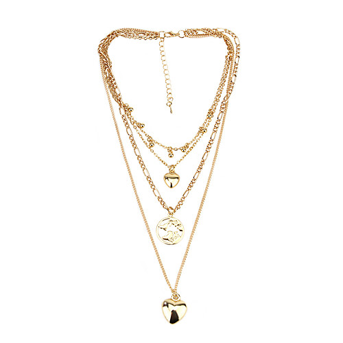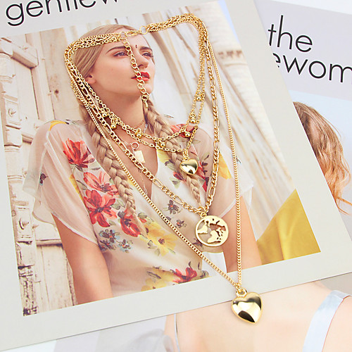 Жен. Ожерелья с подвесками Цепочка Слоистые ожерелья Многослойный Карты Сердце Классика Винтаж модный Мода Хром Золотой 57 cm Ожерелье Бижутерия 1шт Назначение