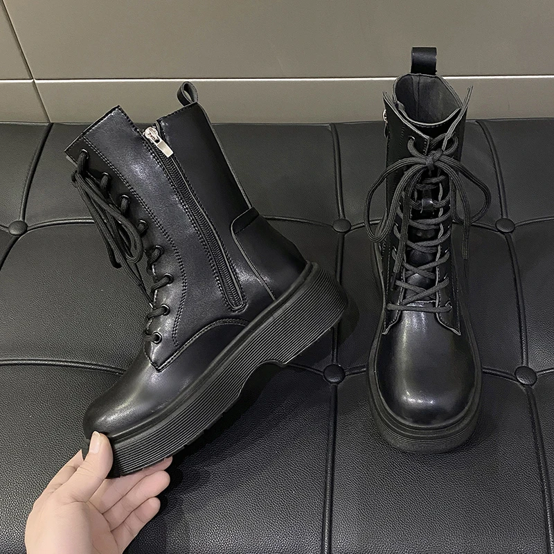 block heel deep mouth platform pumps leather women shoes 2020 high heels shoes ladies office party shoe plus size 33-431, Black