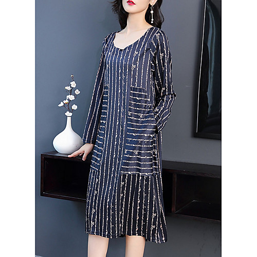 Жен. Элегантный стиль Прямое Платье - Полоски До колена