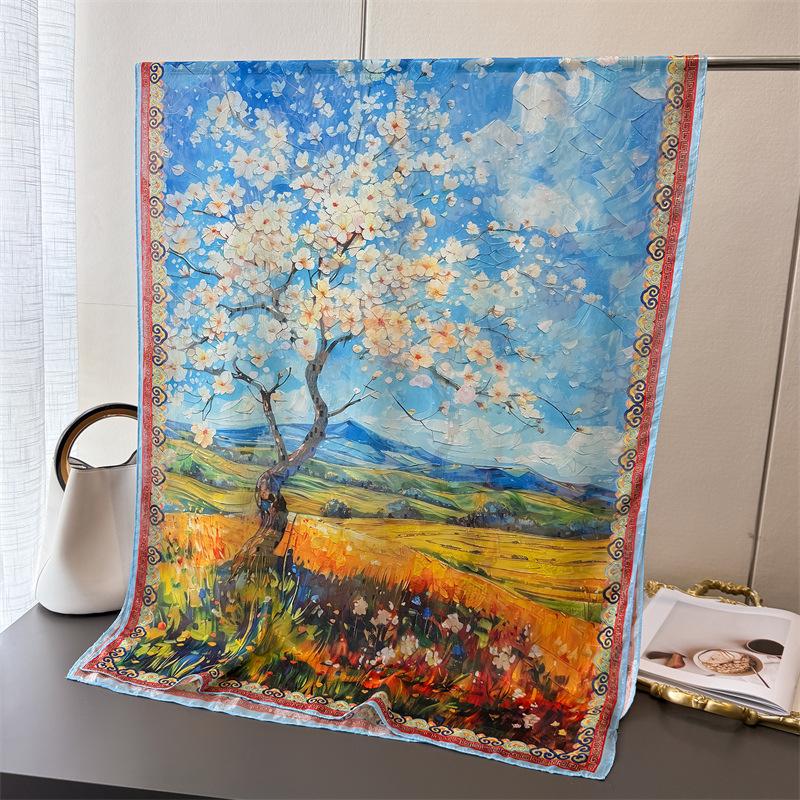 Живопись Цилу печать резка цветов весенне-летний шелковый шарф большой длинный шарф высококлассная дорожная шаль защита от солнца женский шарф косынка 180*70cm