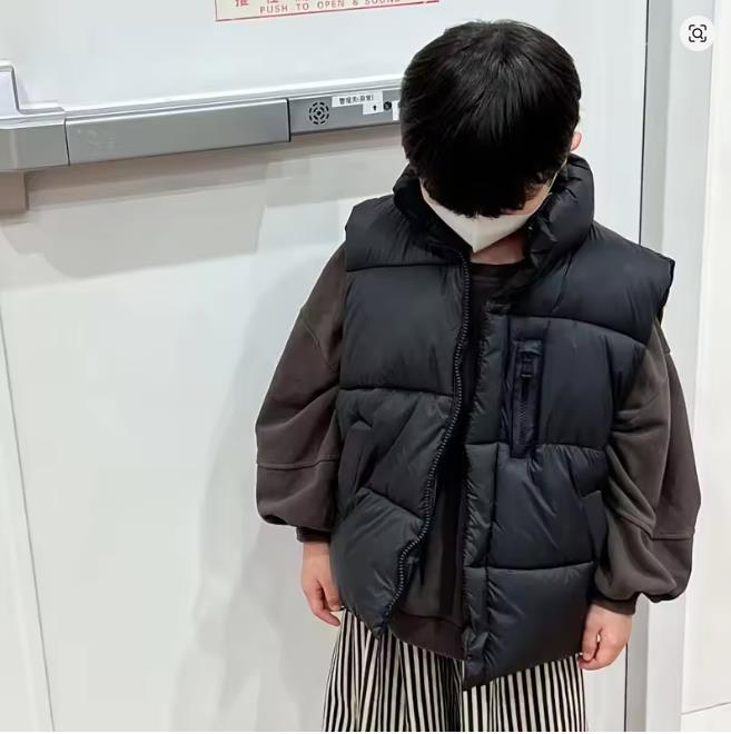 Жилет для девочки Осень Весна Пуховый жилет для мальчика Детский Зимний Хлопковый Стойка Воротник Без рукавов Пальто Детская Модная Одежда 90