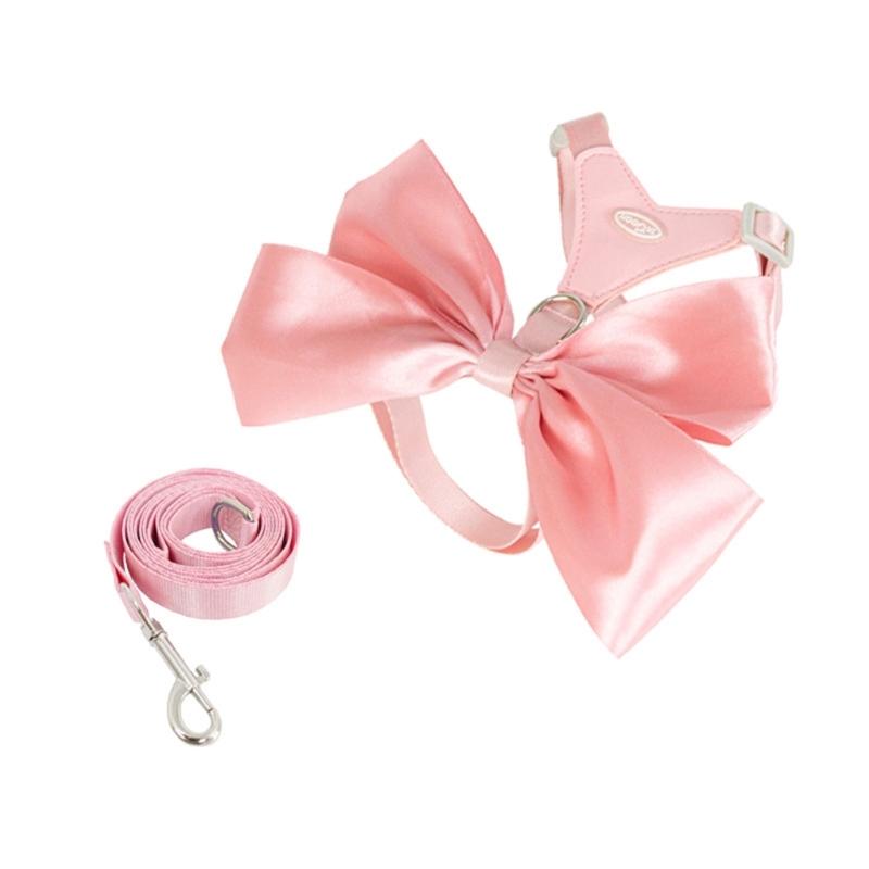 Жилет для собак, милый поводок с бантом для больших собак, шлейки, прочный разноцветный поводок, длинный ремень, мягкая ручка M розовый