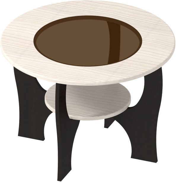 журнальный столик, 650x650 мм, высота 550 мм, материал: МДФ/стекло (столешница), ЛДСП (опоры), бежевый