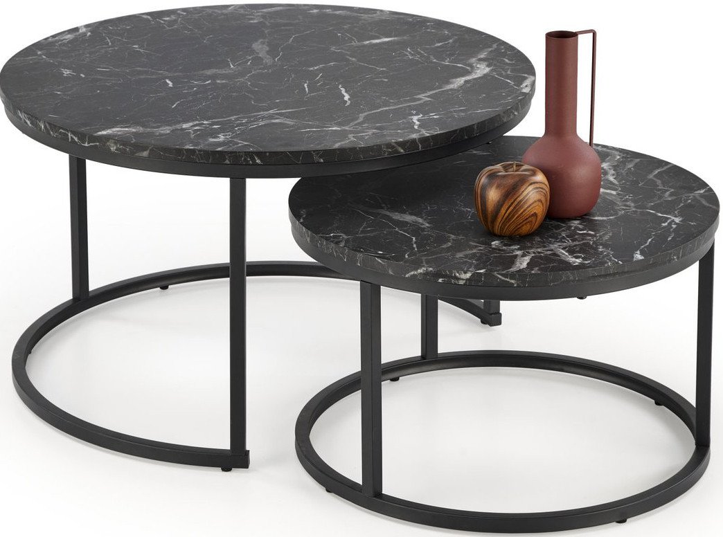 Журнальный столик Halmar Java 2 стола (черный мрамор/черный)