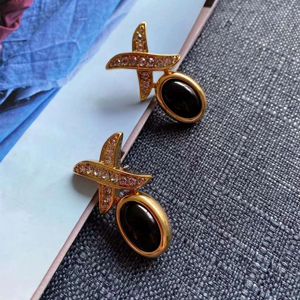 Retro studs black oval earrings senior sense niche light luxury everything matching ear accessories