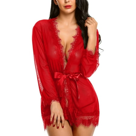 Women s Sexy Mesh Eyelashes Lace Sexy Bathrobe Nightdress Pajamas Sexy Lingerie