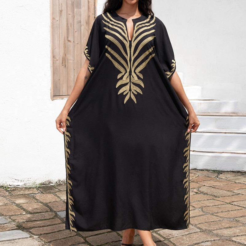 Жіноча мода Літо Весна Колірний блок Принт Рукава 1/2 V-подібний виріз Вільна лінія талії Повсякденні сукні Size: One Size