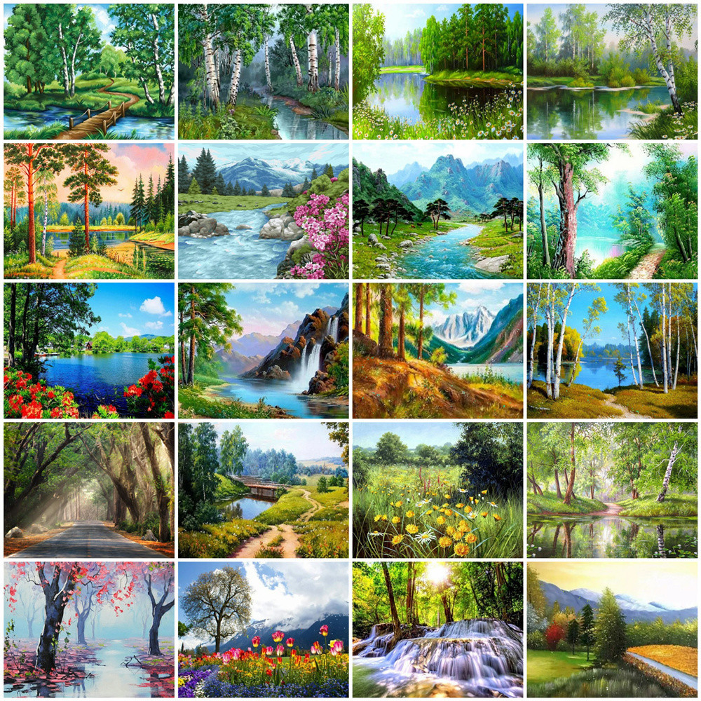 HUACAN DIY Frame Coloring By Number Tree Scenery Kits Painting By Number Lake Spring Modern On Canvas HandPainted Art Gift