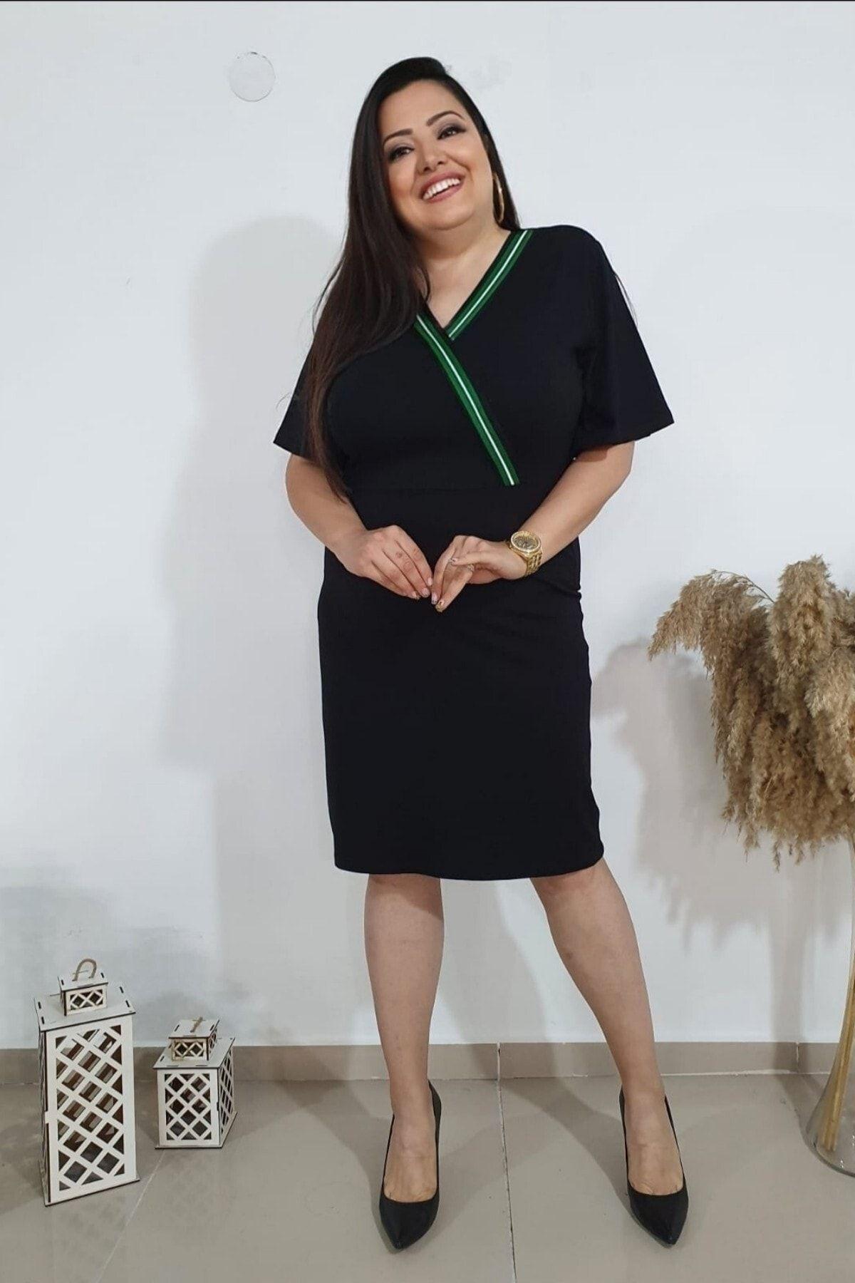 Жіноче плаття великого розміру Двобортне плаття з лайкри в зелену смужку XL