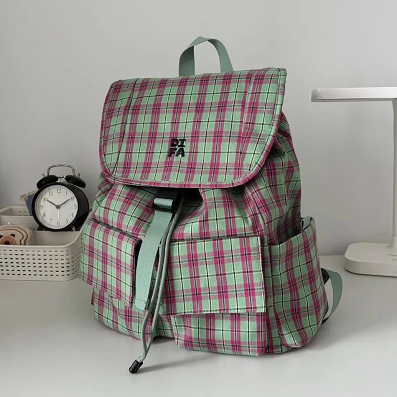HAEX Aesthetic Women Backpacks 2025 Harajuku Plaid Students Large Capacity Commute Mochilas Para Mujer Casual Outdoor Bag Female