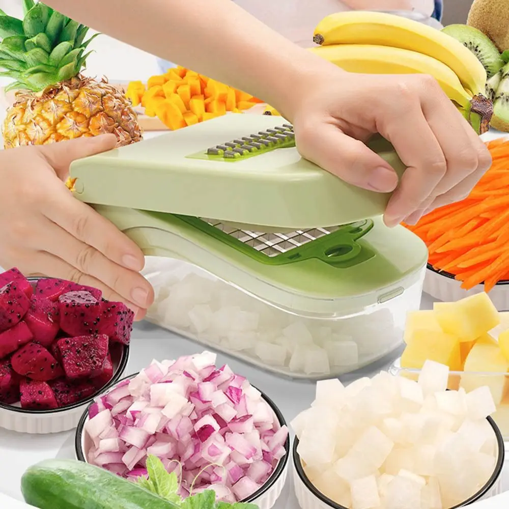 With Basket Vegetable Chopper Time Saver Stainless Steel Chopper Vegetable Slicer Safe Easy Pour Opening Vegetable Cutter