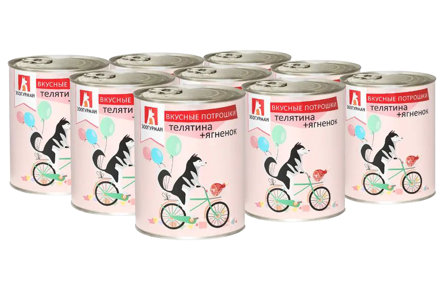 ЗООГУРМАН ЗООГУРМАН ВКУСНЫЕ ПОТРОШКИ для взрослых собак с телятиной и ягненком (750 гр х 9
