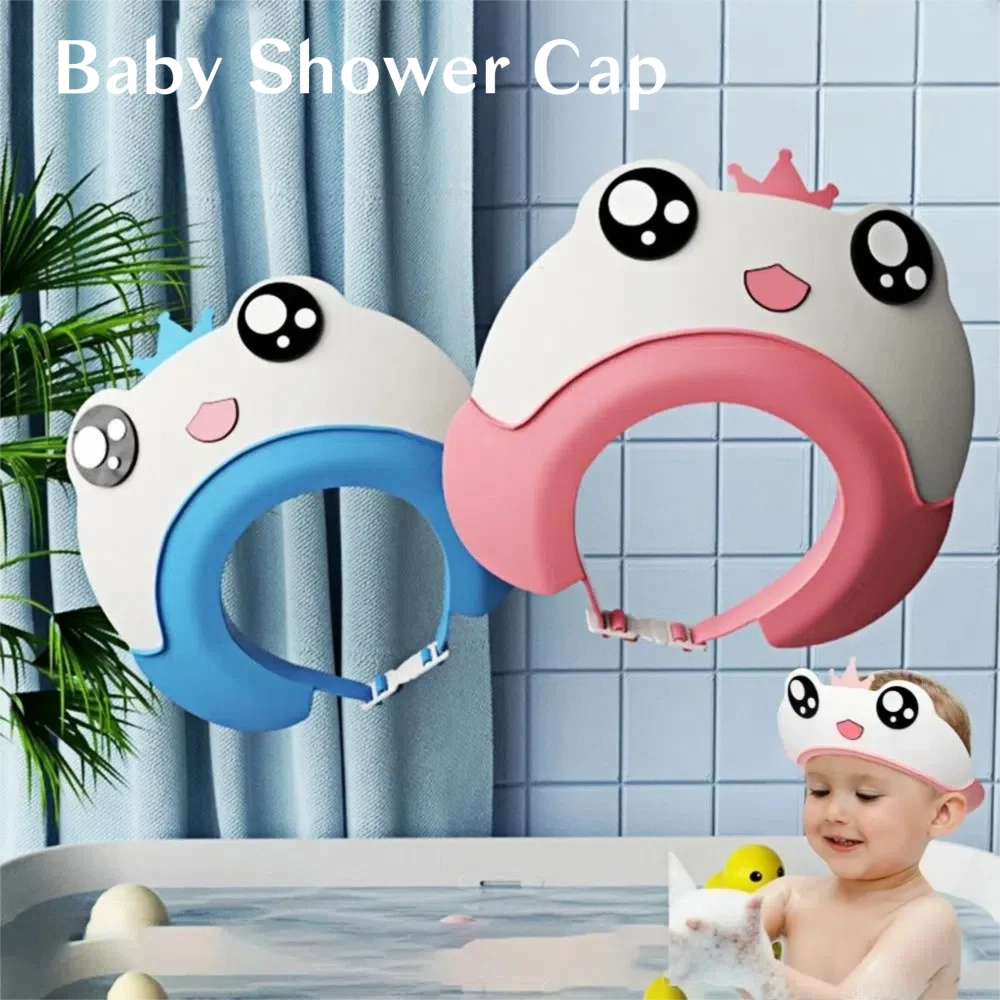 Забавная детская шапочка для душа с регулируемым размером в форме лягушки, мультяшная шапочка для мытья волос, водонепроницаемая защита ушей, козырек для ванны, детская ванна