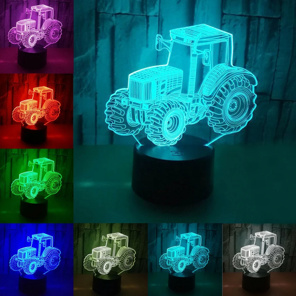 Забавная 3D иллюзия, детская атмосферная лампа, светодиодный сенсорный контроль, подарки, форма трактора, спальня вечерние, светильник, 7 цве...