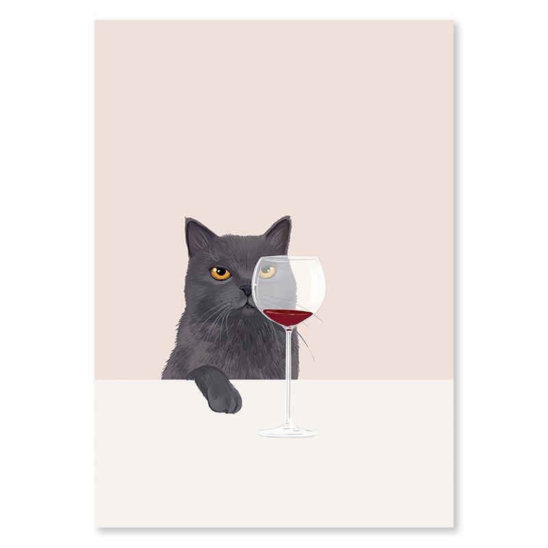 Забавные животные, черно-белые кошки, красное вино, плакат, любитель кошек, холст, живопись, настенная живопись для гостиной, печатные фотографии для домашнего декора 21x30cm No Framed