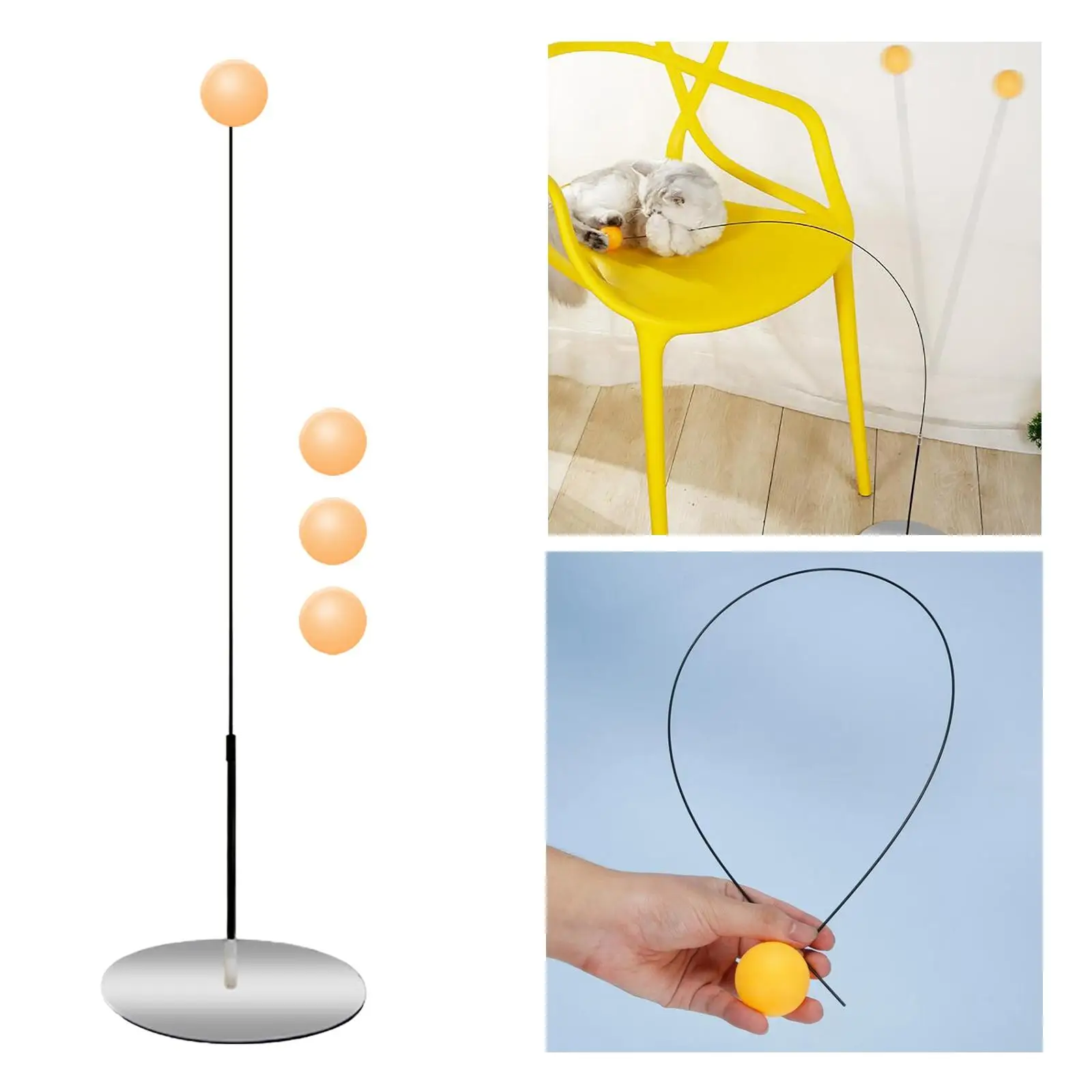 Забавные игрушки для кошек с эластичным стержнем из сплава, 4 дюйма, мощная база на присоске для пинг-понга, улучшающая кошачья палочка, игру...