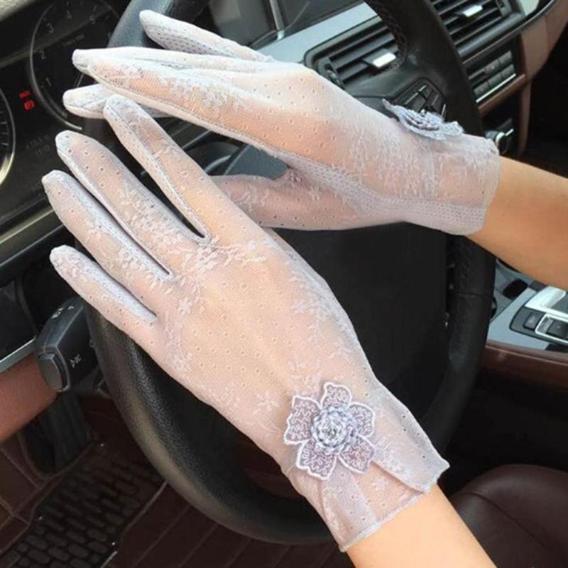 Women UV Sunscreen Short Sun Female Gloves Sexy Summer Fashion Silk Lace Driving Thin Touch Screen Lady Breathable Gloves
