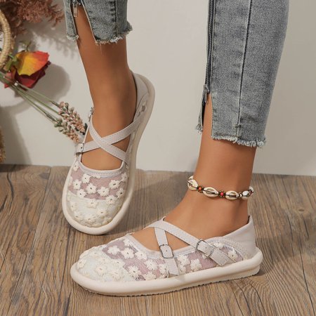 UIX Ladies Casual Flower Lace Hollow Out Breathable Soft Bottom Flat Casual Shoes Single Shoes
