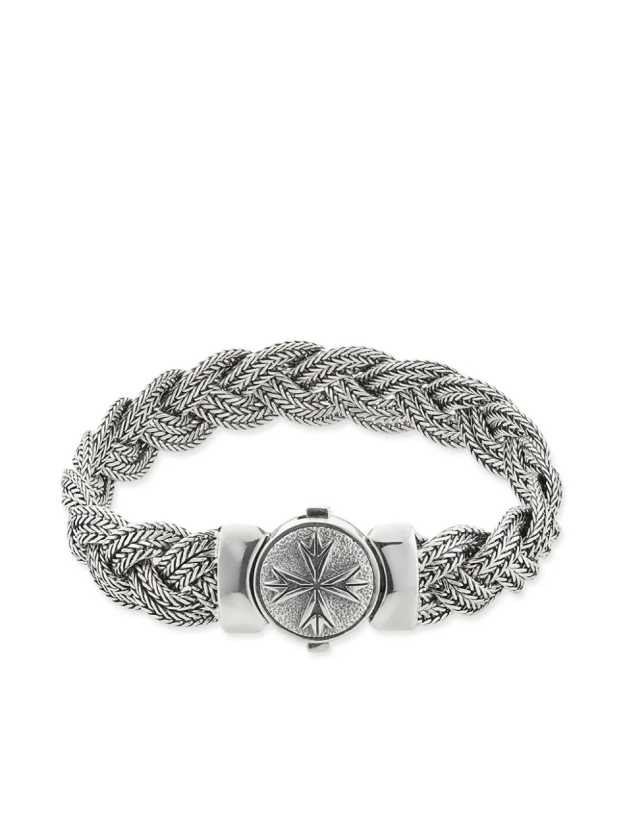 Большой плоский плетеный браслет с бриллиантовой огранкой Emanuele Bicocchi, серебряный