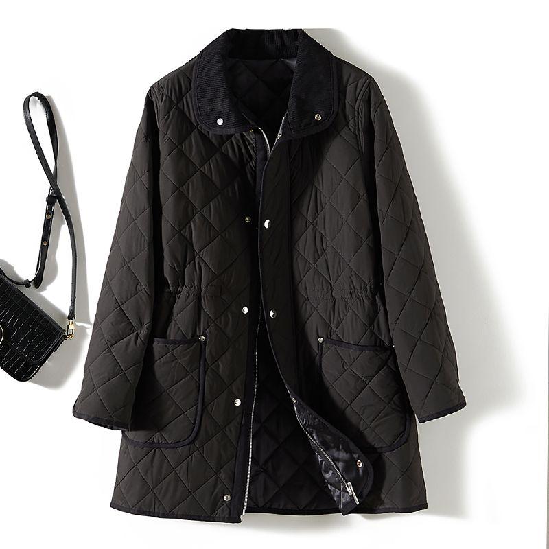Заказы, экспортированные в Японию Оригинальный заказ Способная девушка Маленький лацкан Кулиска Синьцзянский хлопок Длинное пуховое пальто Хлопковое пальто Осенне-зимняя верхняя одежда Black L