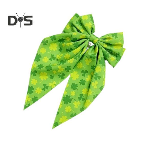 Заколка для волос из зеленой ленты с бантом и узором в виде четырехлистного клевера, пружинная заколка для затылка, заколка для волос в милом стиле 2
