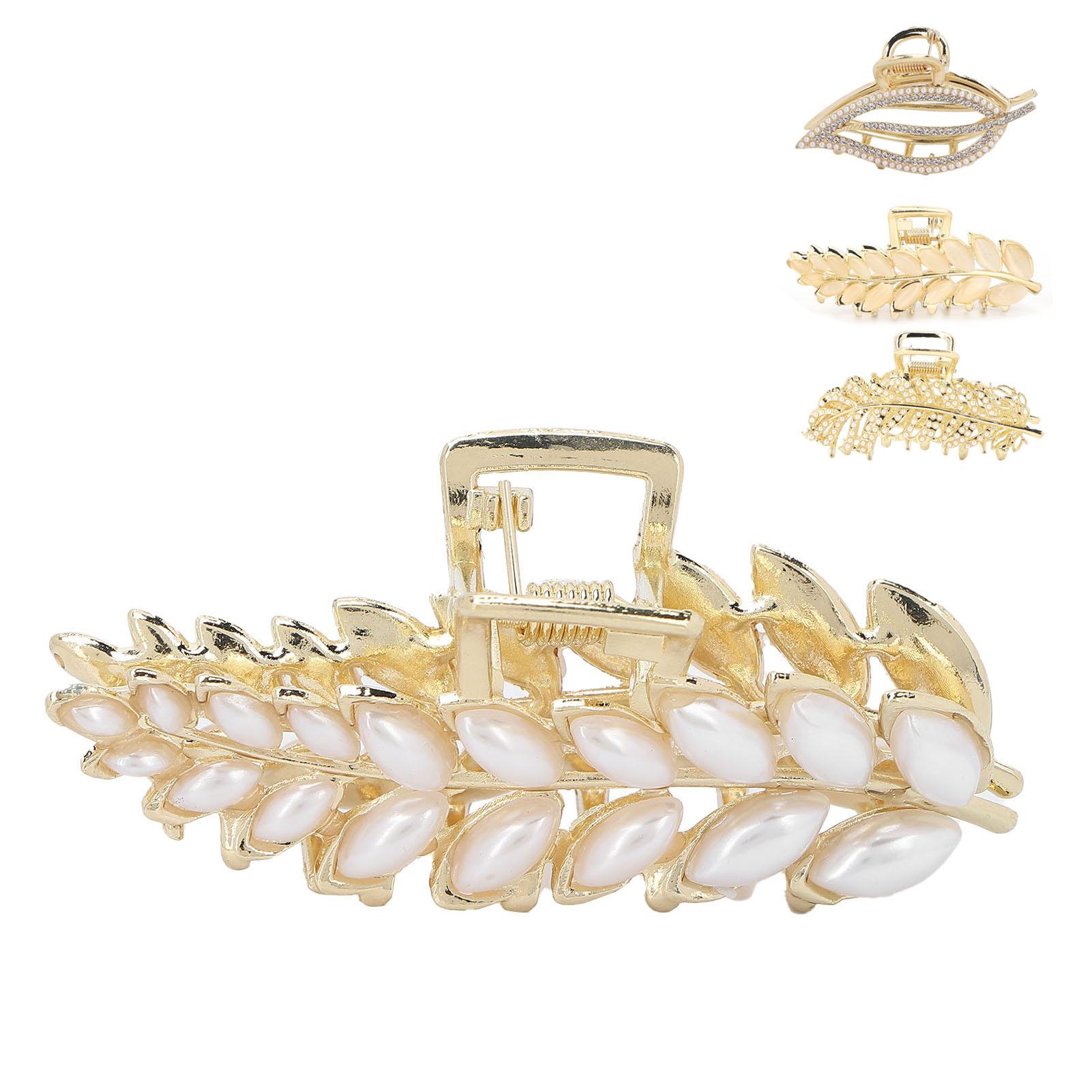 Заколки-краб для волос в форме листа из сплава с искусственным жемчугом, сильная фиксация, нескользящая заколка для волос Transparent Faux Pearl