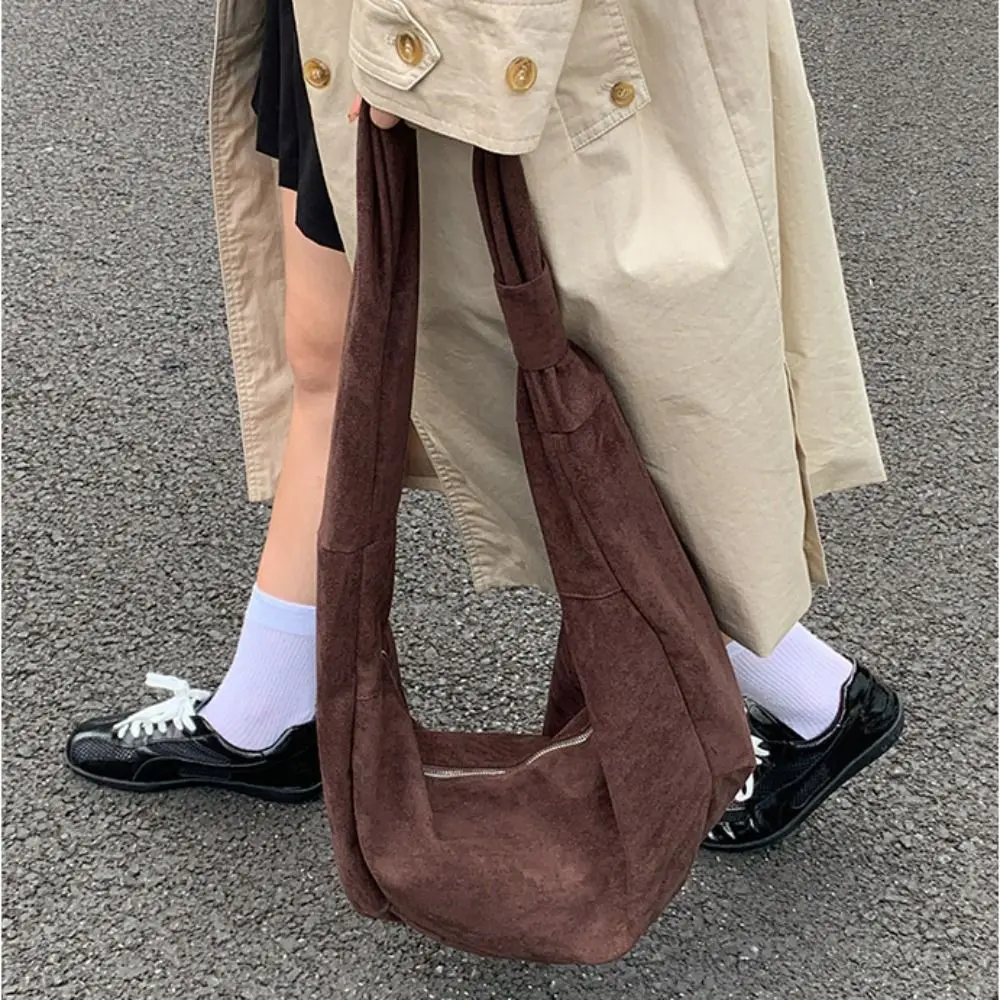 Замшевая матовая сумка для пельменей на молнии, большая вместительная сумка, винтажная сумка через плечо из искусственной кожи, однотонная женская сумка-тоут в корейском стиле