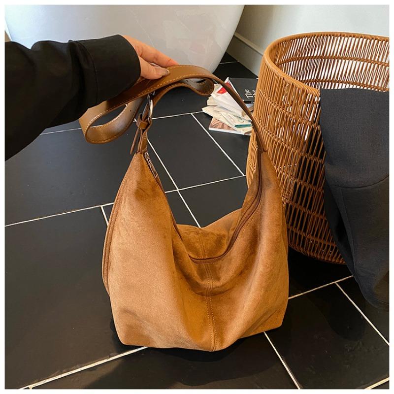 Замшевая сумка женская большой вместимости новая осенне-зимняя на плечо через плечо сумка-мессенджер ретро дорожная сумка-тоут коричневый
