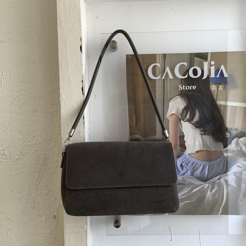 Замшевая сумка женская большой вместимости 2025 новая осень и зима универсальная сумка-мессенджер на одно плечо под руку для поездок на работу маленькая квадратная сумка серый