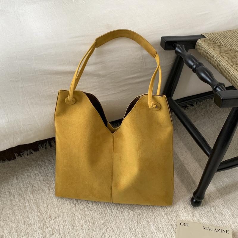 Замшевая сумка женская большой вместимости 2025 новая осень и зима универсальная повседневная на плечо ретро сумка для поездок сумка-тоут жёлтый