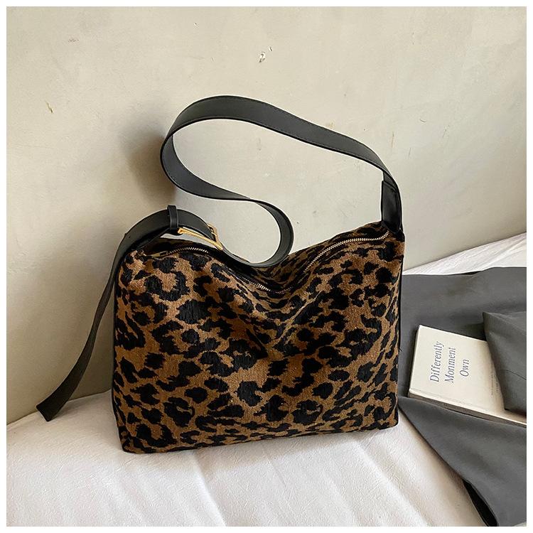 Замшевая сумка женская большой вместимости 2025 осень новая повседневная на плечо мессенджер высокая ценность сумка-пельмень для通勤 цветной печати леопарда