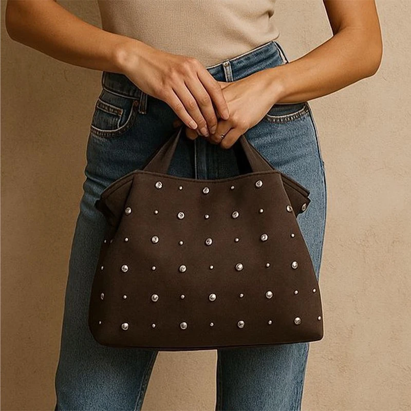 Замшевая сумка с заклепками, роскошная женская сумка с магнитной пряжкой, широкий плечевой ремень, сумка на одно плечо, большая вместительная пригородная сумка