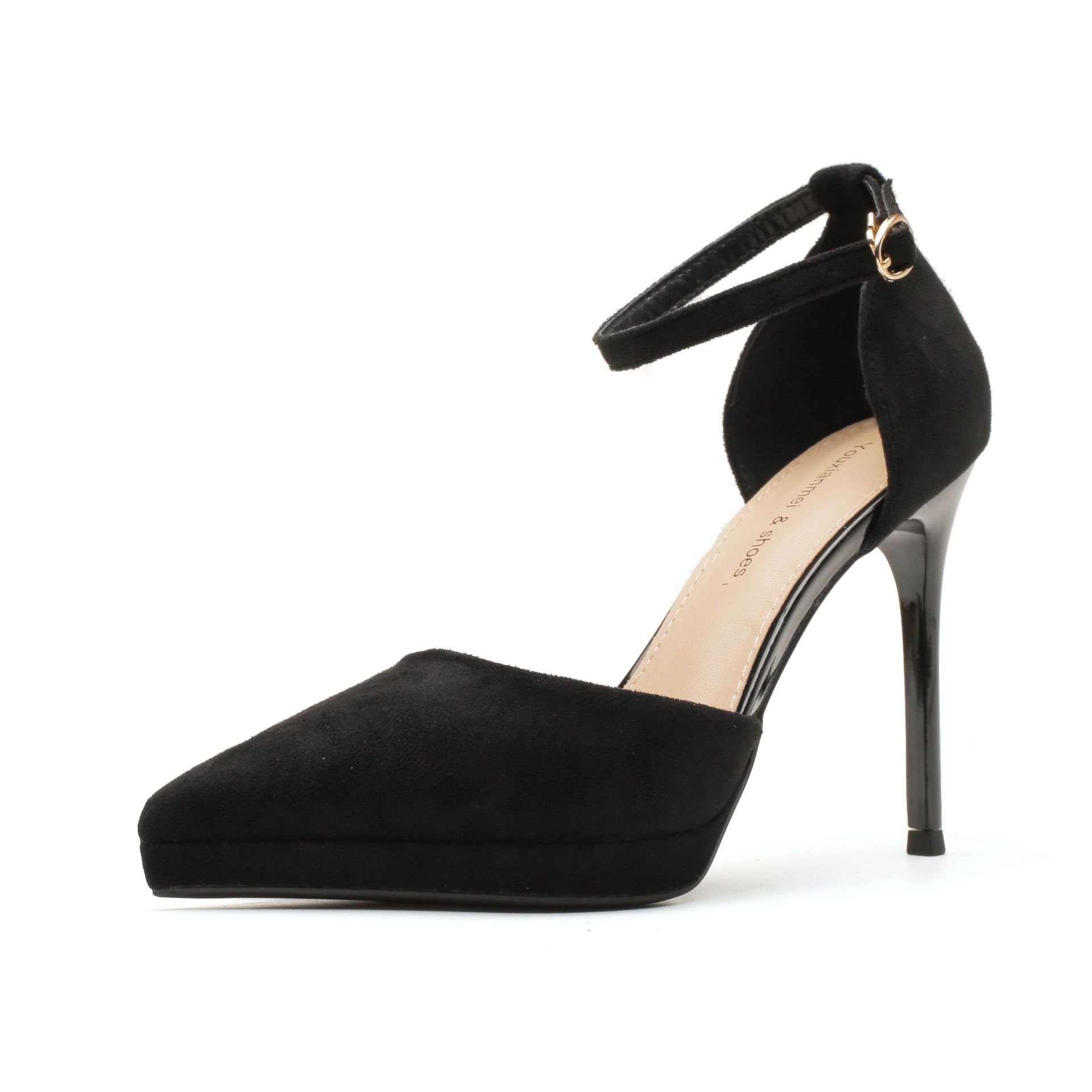 Замшевое водонепроницаемое платье-миди с вырезом, туфли-стилеты на высоком каблуке, профессиональное платье для通勤, банкетное платье, универсальная женская обувь 40 чёрный