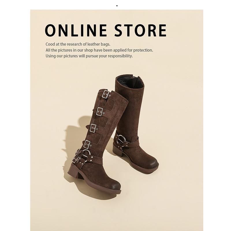 Замшевые Коровьи Анти-Замшевые Винтажные Рыцарские Сапоги Пряжка на Ремне Высокие, но до Колена Коричневые Сапоги в Стиле Вестерн Ковбойские 40 коричневый