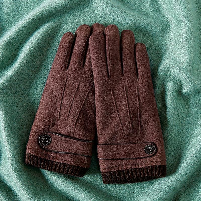 Замшевые перчатки мужские осенне-зимние ветрозащитные и теплые сенсорные с начесом утолщенные для велоспорта, мотоцикла, вождения в холод и нескользящие one size fits all коричневый