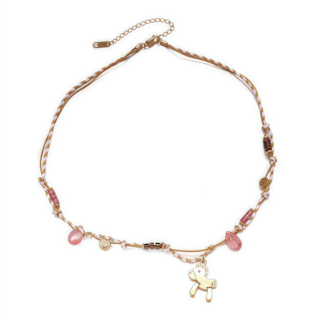 18k Gold Plated Stainless Steel Sweet Dopamine Natural Stone Braided Bohemian Pony Pendant Handmade Necklace for Women