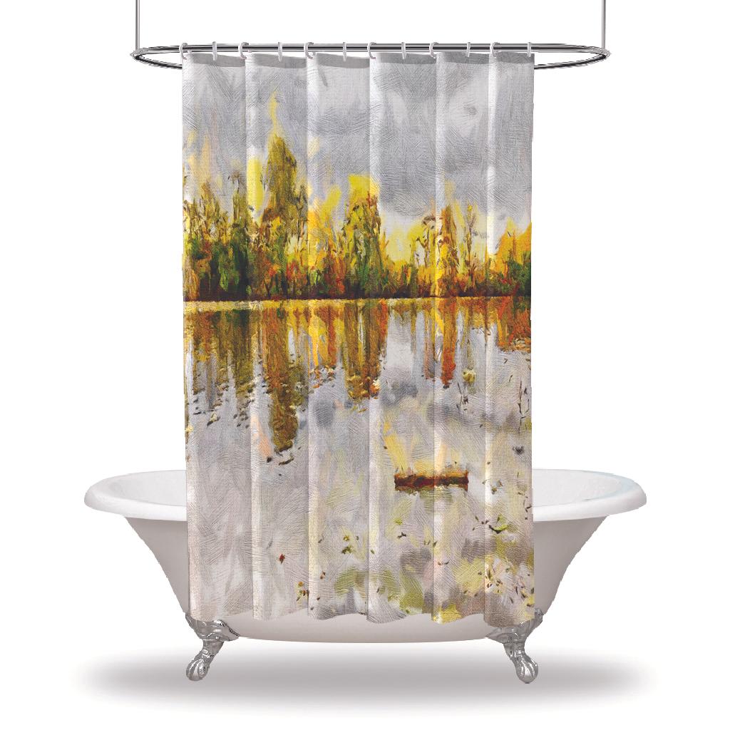 Занавеска для душа с рисунком/водостойкие занавески для душа для украшения вашей ванной комнаты-осенние речные листья, деревья, лес, серый, желтый