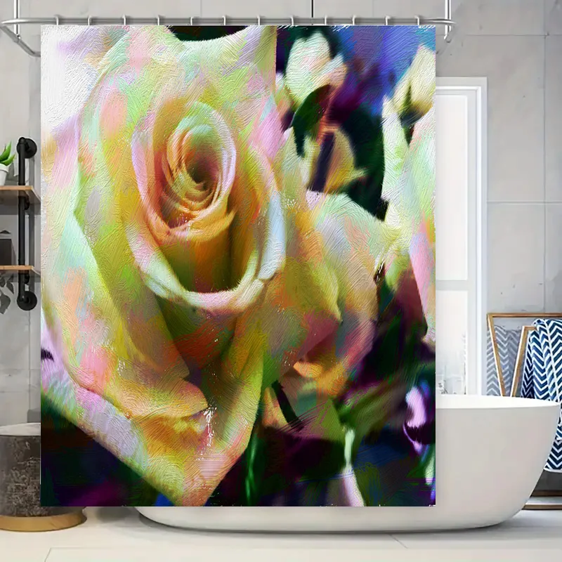 Занавеска для душа с цветочным принтом, роскошный декор для ванной с акварельной розой зеленого, розового и желтого цвета, очень большой размер для украшения ванной комнаты (180x240c