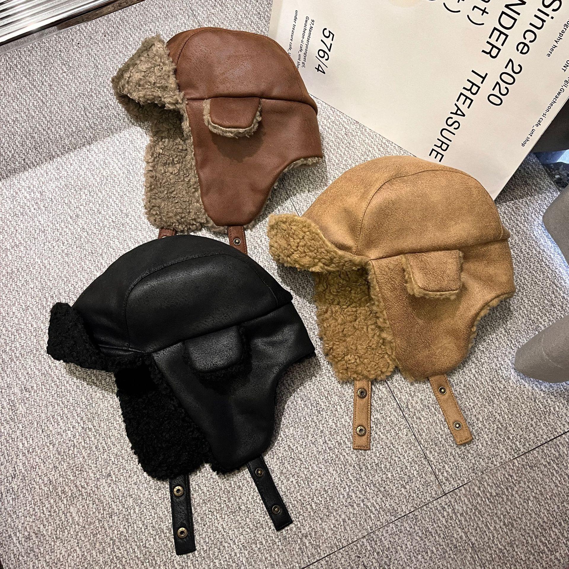 Защита ушей, ткань из оленьей кожи, защита от холода и ветра, флис, шапка Lei Feng, шапка пилота, мужская и женская зимняя утолщенная и теплая M(56-58cm) чёрный