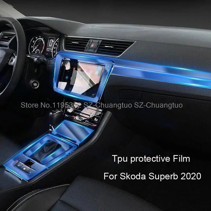 Защитная пленка Tpu для Skoda Superb 2020 Автомобильный интерьер центральная консоль передаточная навигация приборная панель двери окна подъемная панель