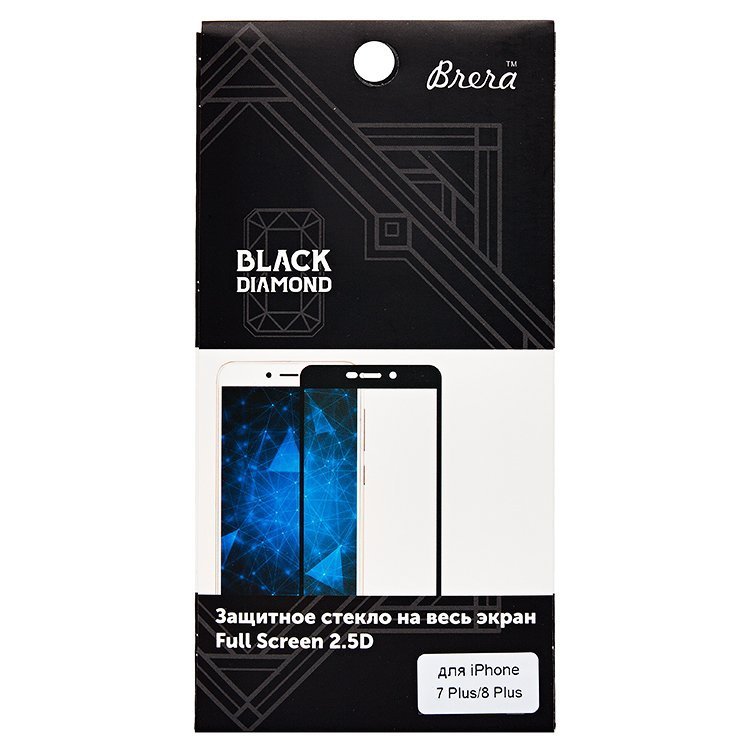 Защитное стекло Brera для экрана смартфона Apple iPhone 7 Plus/8 Plus, FullScreen, поверхность глянцевая, черная рамка, 2.5D (86130)
