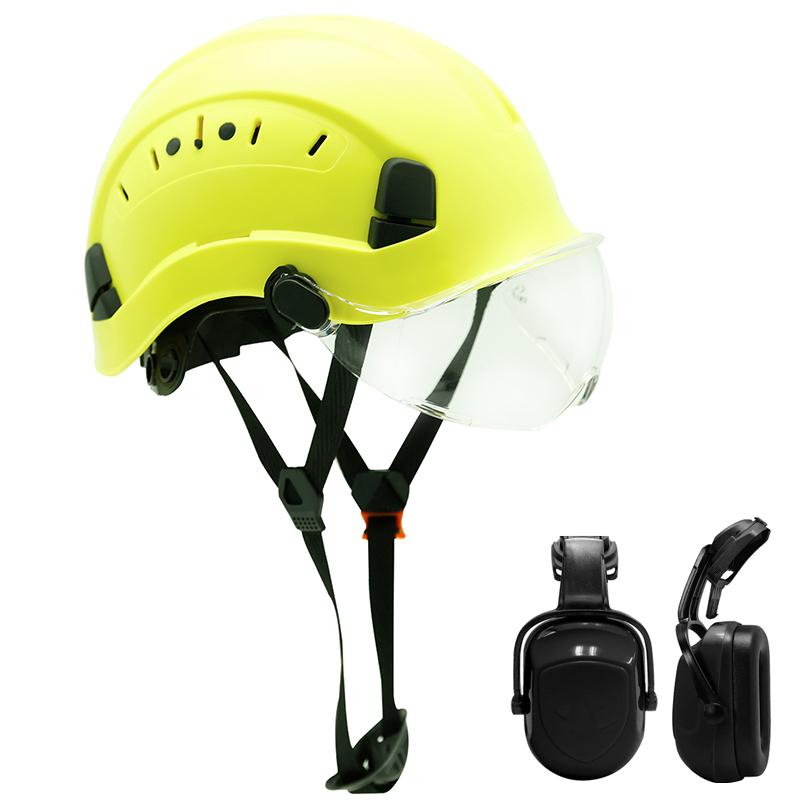 Защитный шлем с темным козырьком и комплектом наушников, каска для скалолазания на открытом воздухе, промышленная защита, спасательная пещера