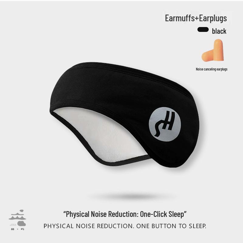 Звуконепроницаемые флисовые наушники и маска для глаз: Шумоподавление, Тепло для осени/зимы, Идеально для сна, Велоспорт на открытом воздухе, Защита 2 в 1. чёрный