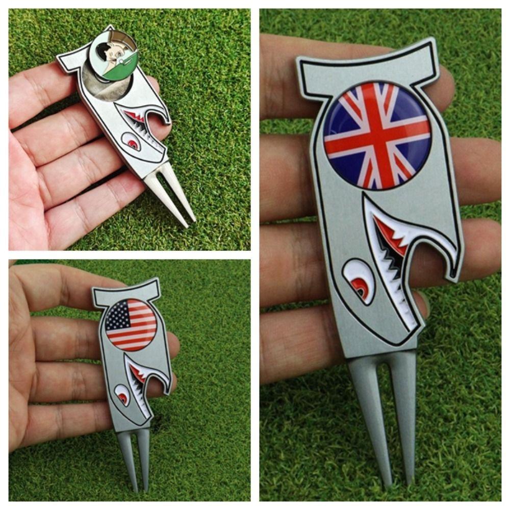 Зеленая вилка Shark Golf, цинк, цинковый сплав, вилка Divot, очиститель канавок, маркер для мяча для гольфа, игра в гольф