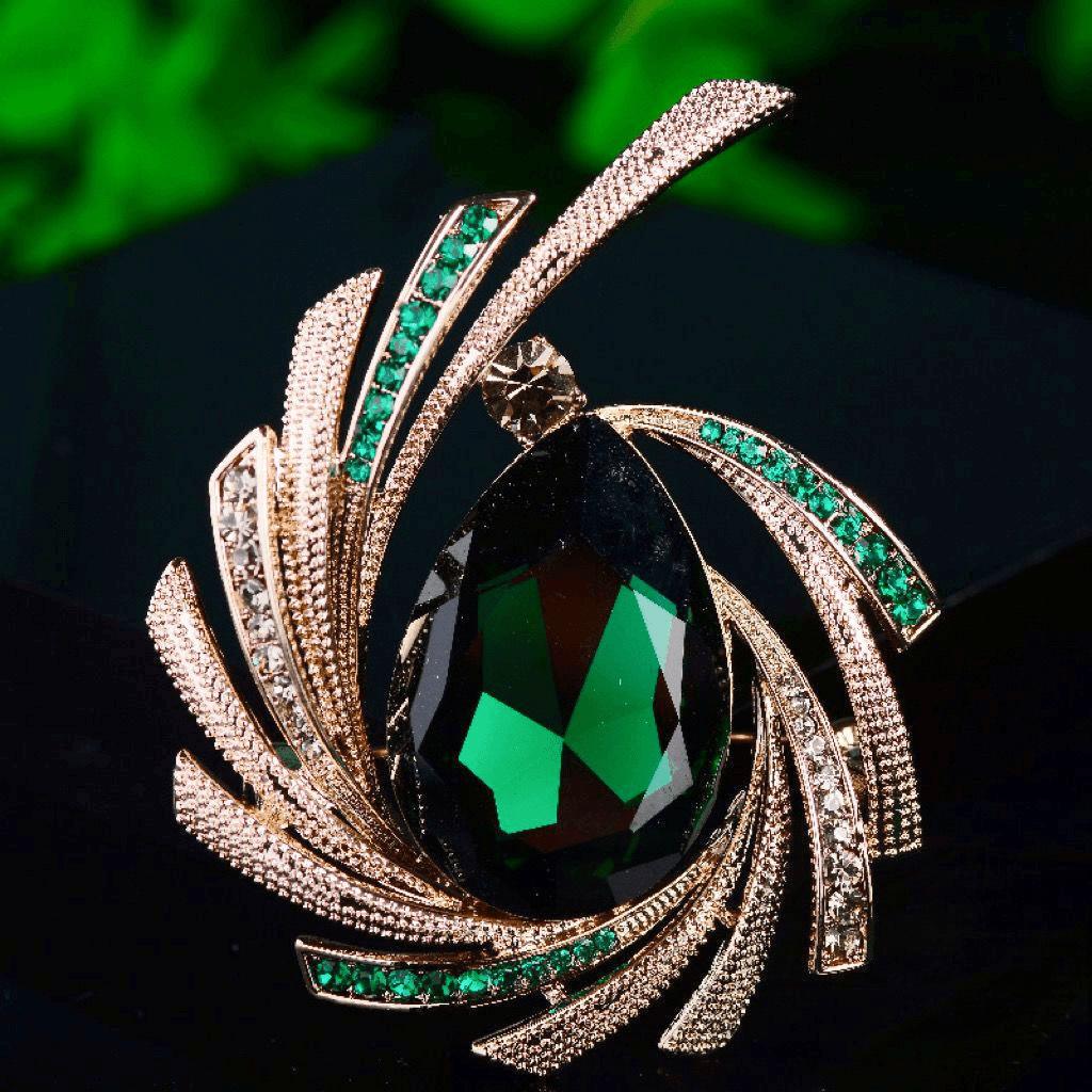 Зеленая и красная вращающаяся хрустальная брошь в виде цветка в форме сердца 5.4*4.7cm зелёный
