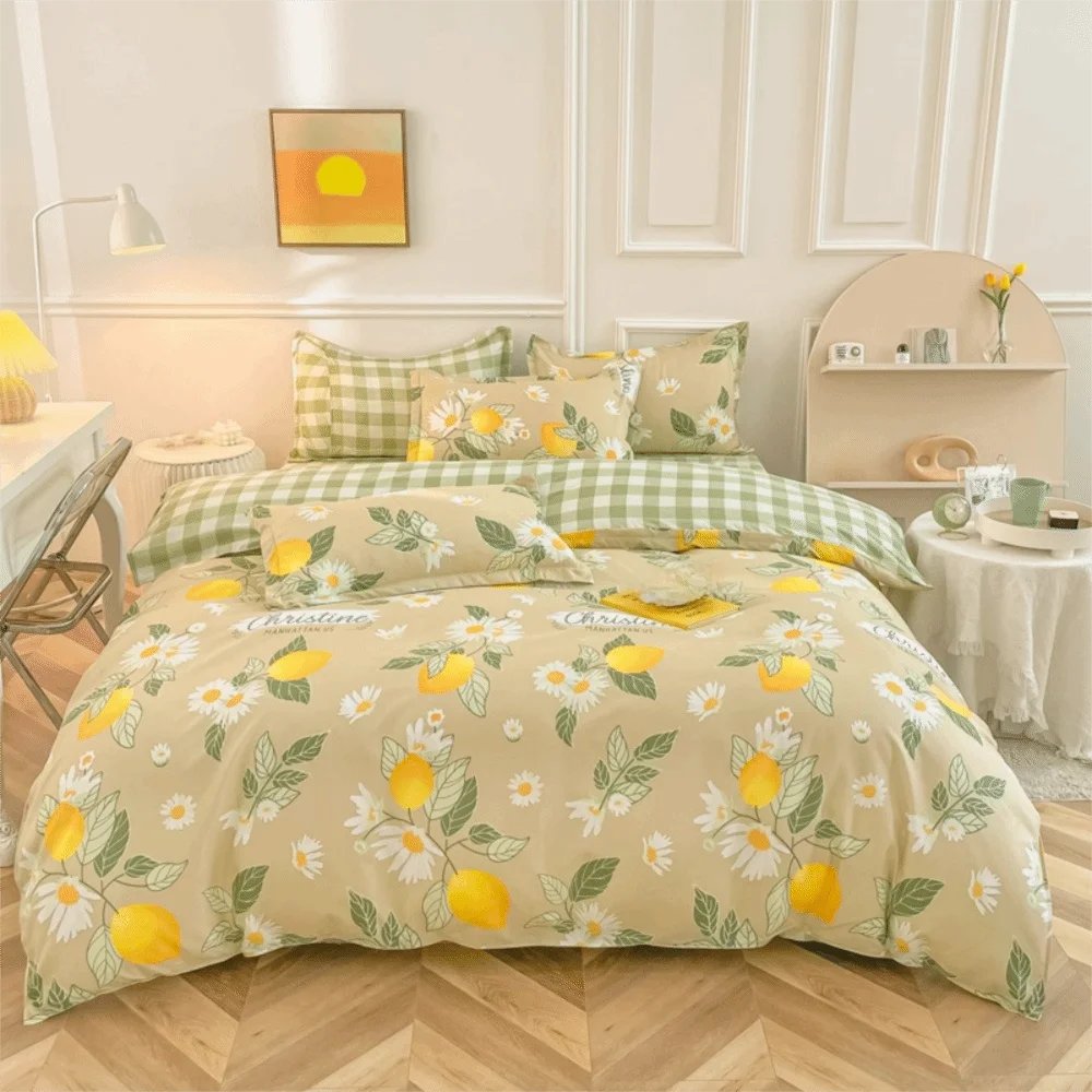 Зеленая серия 4 в 1, комплект простыней с цветочным принтом на молнии, пододеяльник, наволочки, утолщенные пододеяльники, 4 шт.