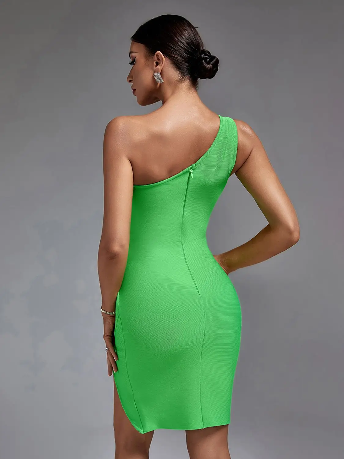Зеленое Бандажное платье, женское платье со стразами, облегающее элегантное привлекательное мини-платье на одно плечо, вечерние Клубные наряды на день рождения, лето 2023