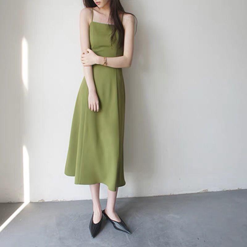 Зеленое платье с лямкой авокадо, женское летнее французское длинное платье с открытой талией для пожилых людей 2XL зелёный