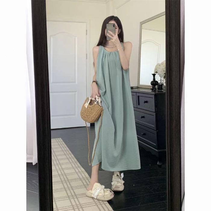 Зеленое пляжное платье с открытой спиной во французском стиле Small